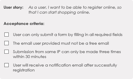 The figure below shows an example of the acceptance criteria of a user story.